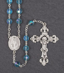 6mm ROUND AQUA STERLING SILVER CENTER & CRUCIFIX ROSARY
