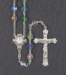 7mm ROUND CRYSTAL TIN CUT AB ENGRAVED CENTER & CRUCIFIX ROSARY