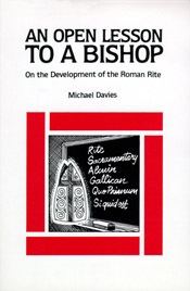 A brief history of the Latin Rite of the Mass (Tridentine Mass) composed in response to a misleading article written by a bishop. There can be very few Catholics--bishops. priests or laymen--whose knowledge of the liturgy will not be deepened by reading An Open Lesson to a Bishop.